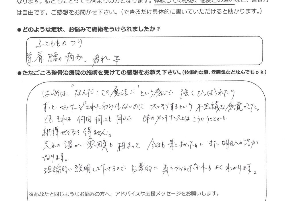 たくさんある整骨院の中で、こちらに出会えて幸せです。