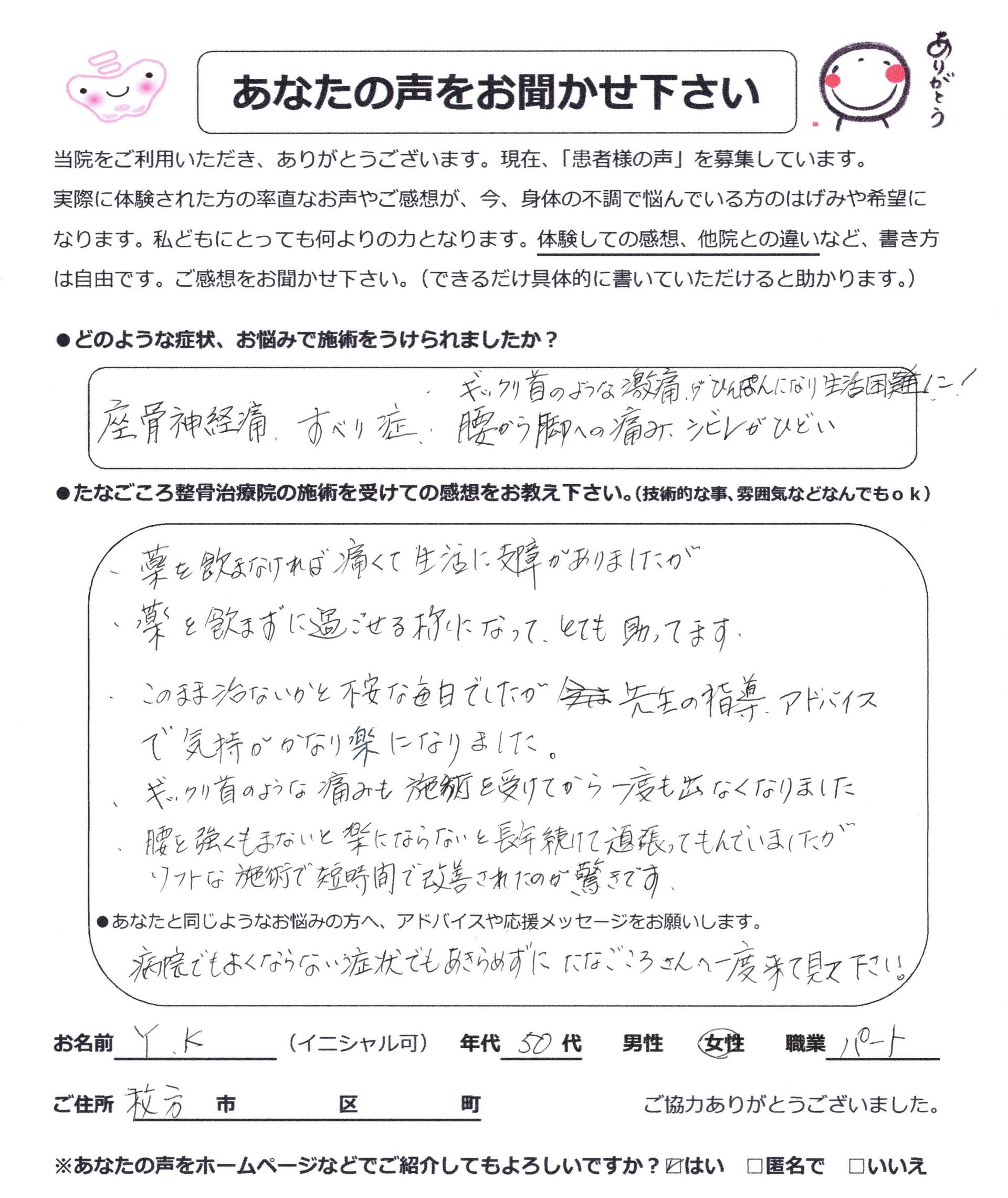 薬を飲まずに過ごせるようになった! Y.Kさん(50代女性・パート)