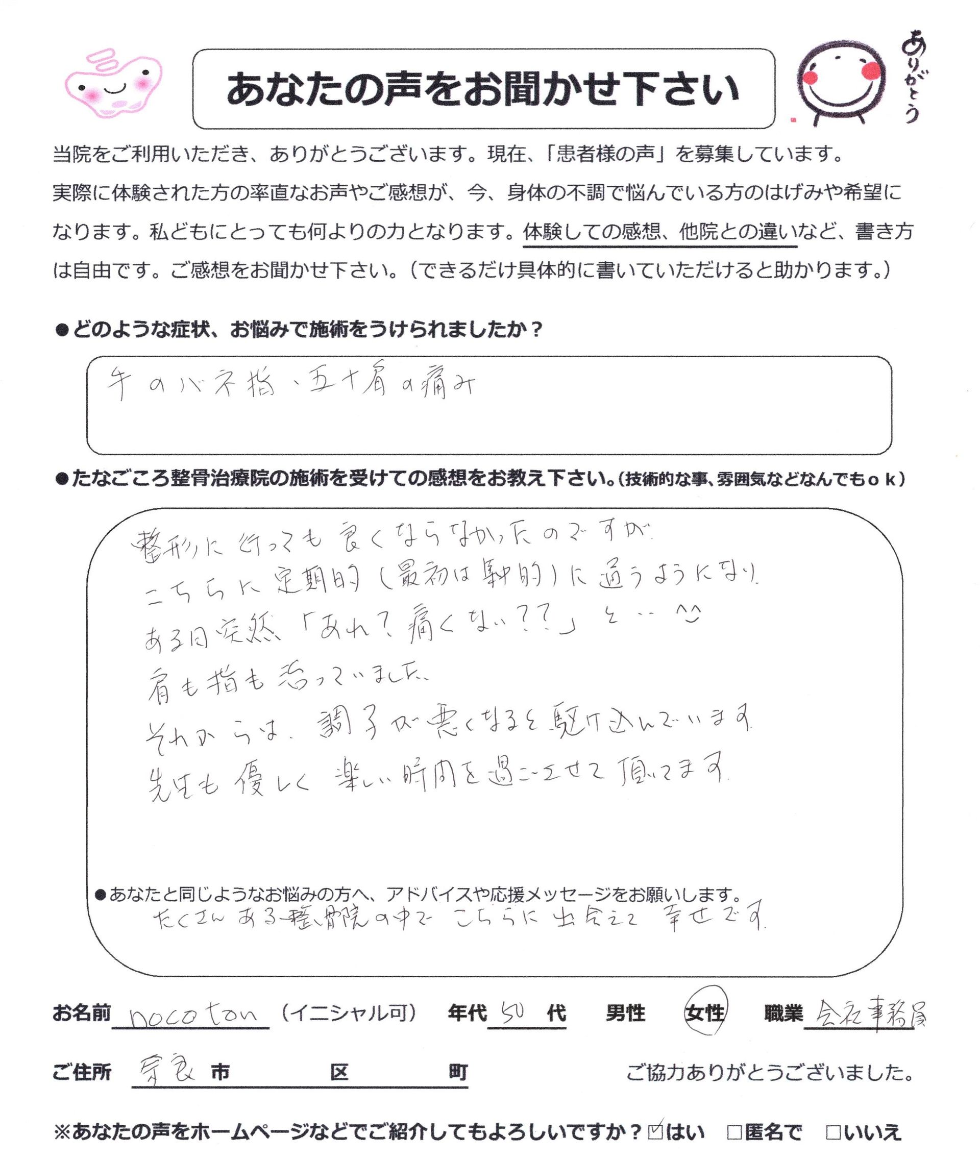 整形外科に行っても良くならなかった痛みが治った! nocotanさん(50代女性・会社事務員)