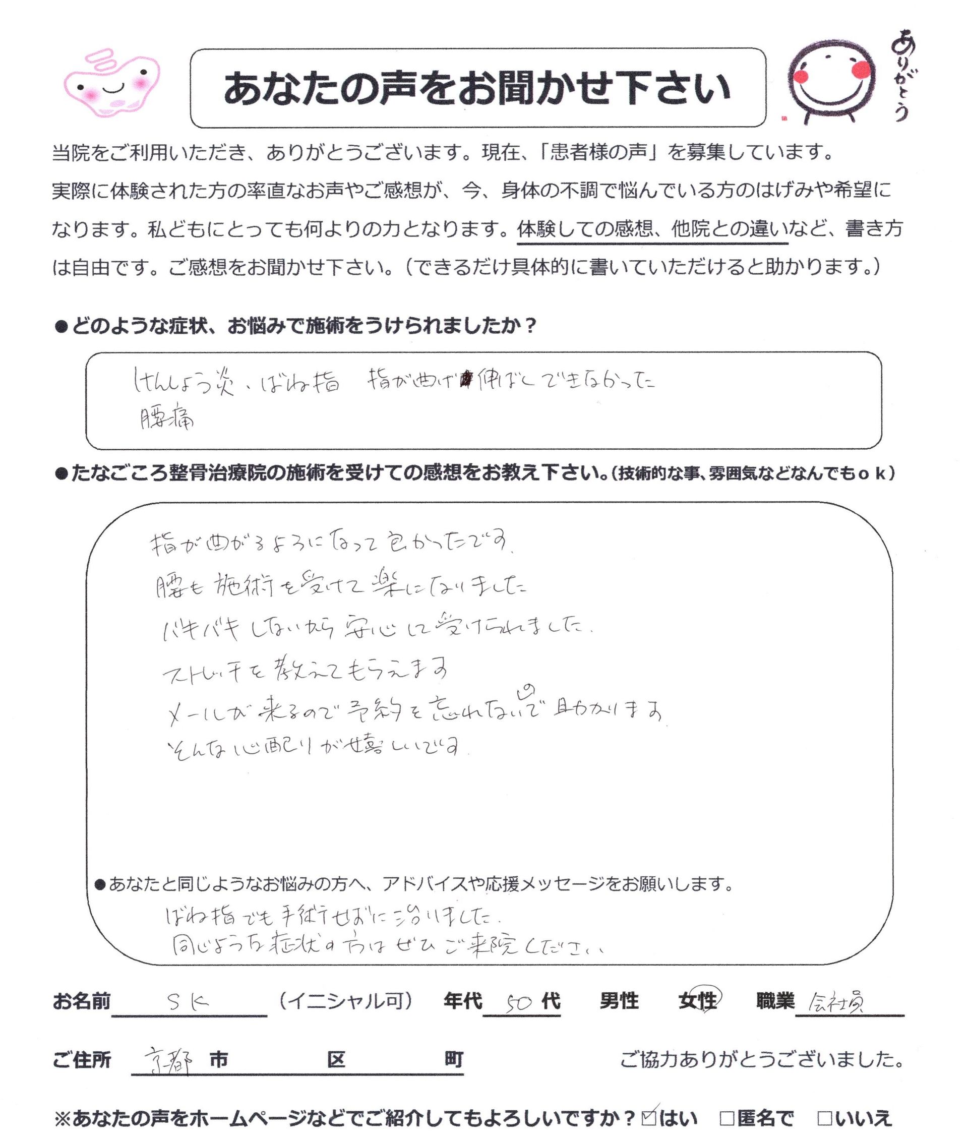 ばね指も手術せずに治った! S.Kさん(50代女性・会社員)