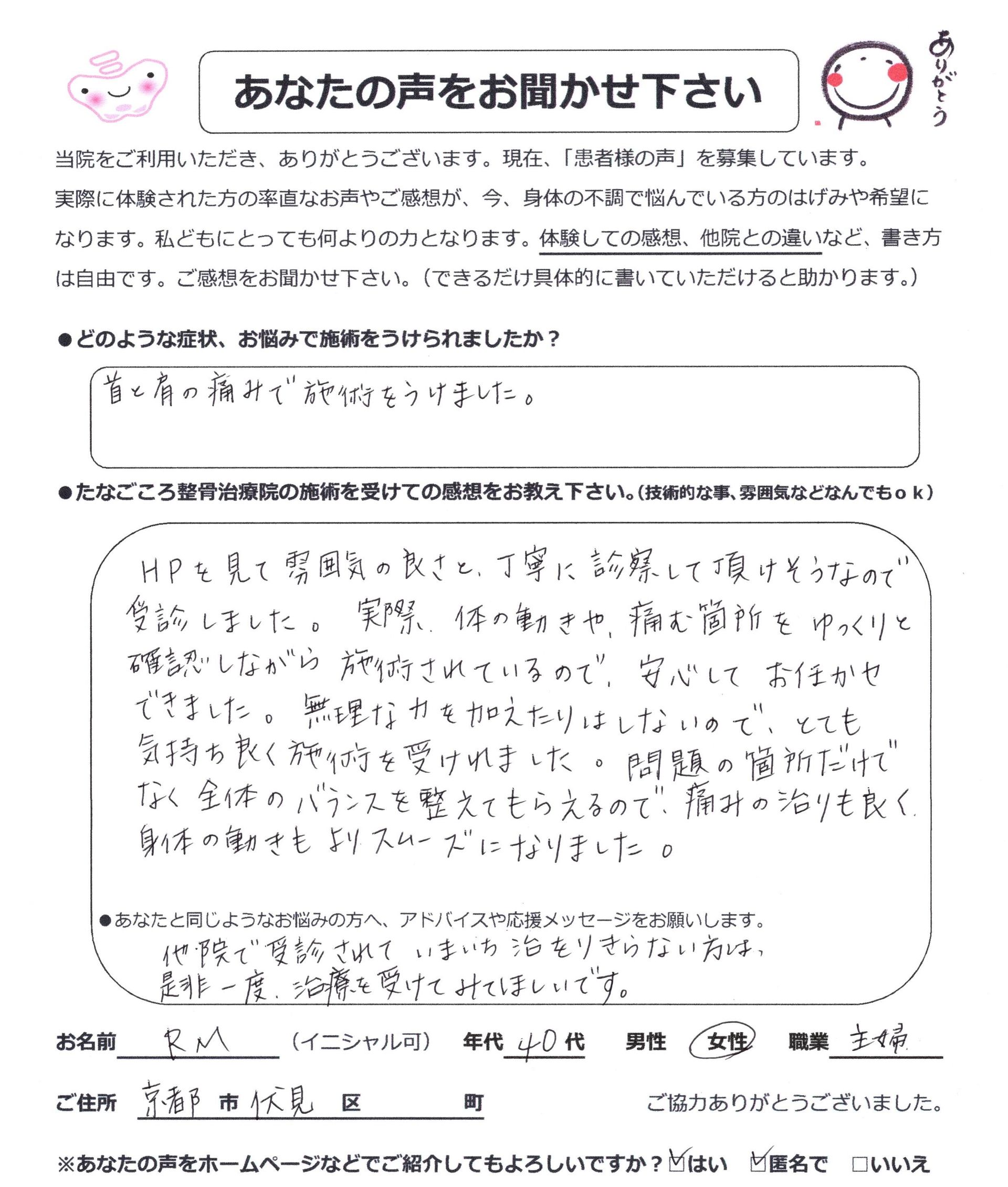 自分に合った施術をしてもらえる! N.Oさん(50代女性・会社員・宇治市)